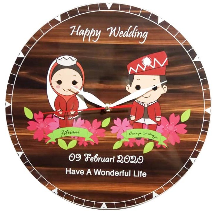Jam Dinding Custom Kartun Wedding Hijab Souvenir Kado Ultah