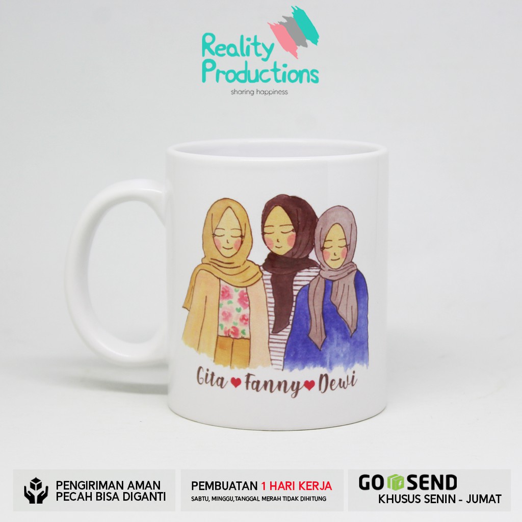 Mug Persahabatan 3 Wanita Hijab Untuk Kado Sahabat Paket 3 Pcs