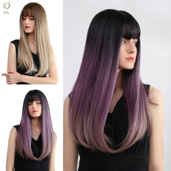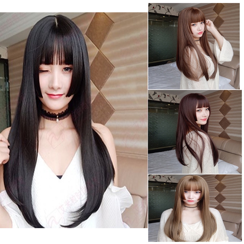 Spot Multicolor Wig Perempuan Rambut Lurus Panjang Poni Udara