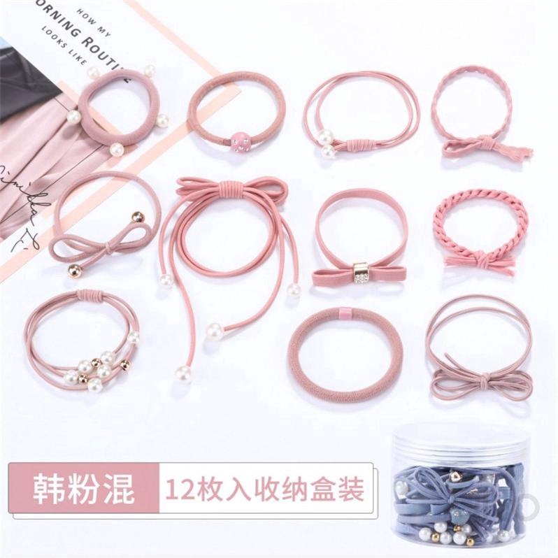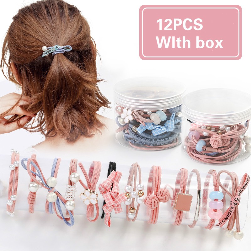 12pcs Kotak Karet Ikat Rambut Korea Elastis Dengan Pita Shopee